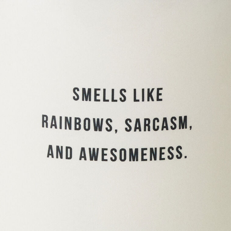 Show them just how awesome and truly magical they are with this scented candle from Hallmark Shoebox. Single-wick glass jar candle features fragrance notes of mandarin orange and grapefruit with a screw-top black metal lid. A humorous sketch of a unicorn sitting in a chair, legs crossed, pairs with a "You magical bastard" message on front of the jar with a fun scent description on back. Makes a hilarious gift for a friend or loved one's birthday or anniversary.