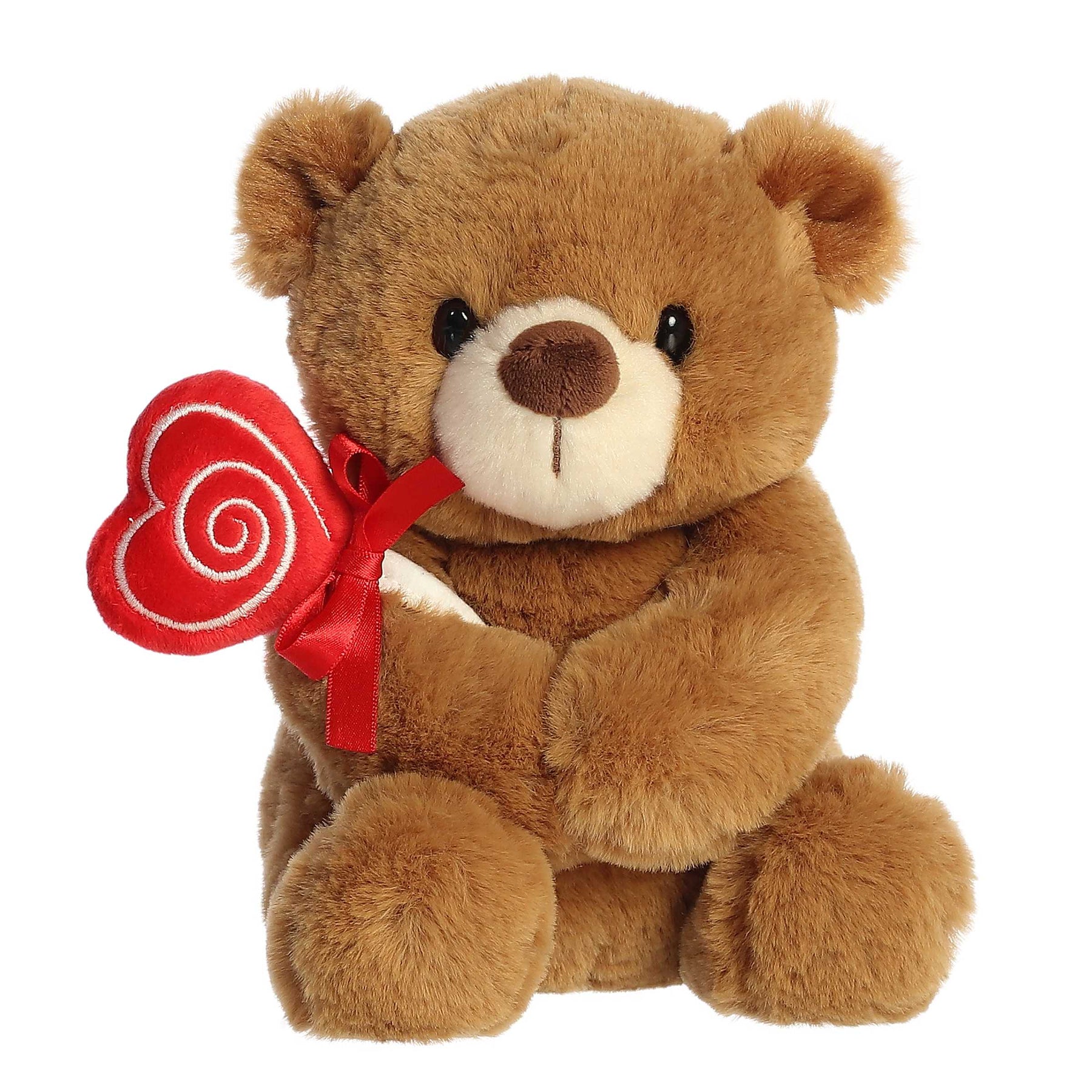 The Sweet Tooth Teddies from the Aurora Valentine's Day Collection is an adorable bear that comes bearing sweetness with a heart-shaped lollipop. This charming plush features soft, rich brown fur and holds a vibrant red lollipop, symbolizing the sweetness of love. Designed to be the perfect companion for anyone special, Sweet Tooth Teddies offer both a cute aesthetic and a heartwarming gesture. Ideal for gifting, these teddy bears promise to be a delightful surprise that conveys affection beautifully, available in both 8" and 11" sizes.