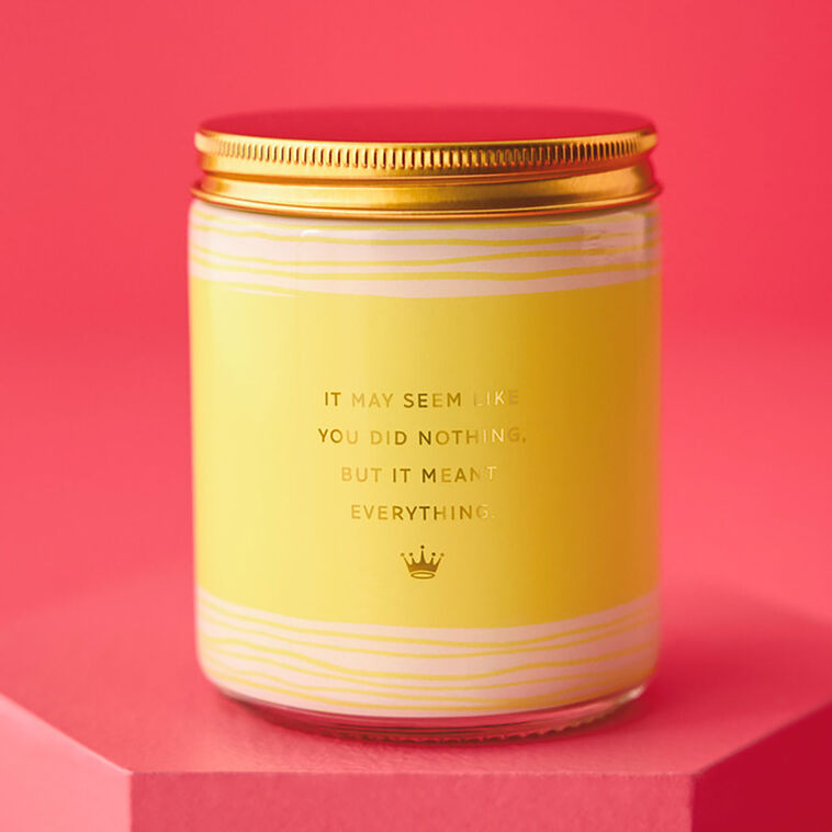 Thank someone who's close to your heart with this scented jar candle that features a soothing sage and lavender fragrance. Single-wick candle in a clear glass jar includes a screw-top metal lid. A label decorated in yellow and white stripes shares a message of appreciation on front and back. Makes a great thank-you gift for a loved one, friend, teacher, coach or caregiver.