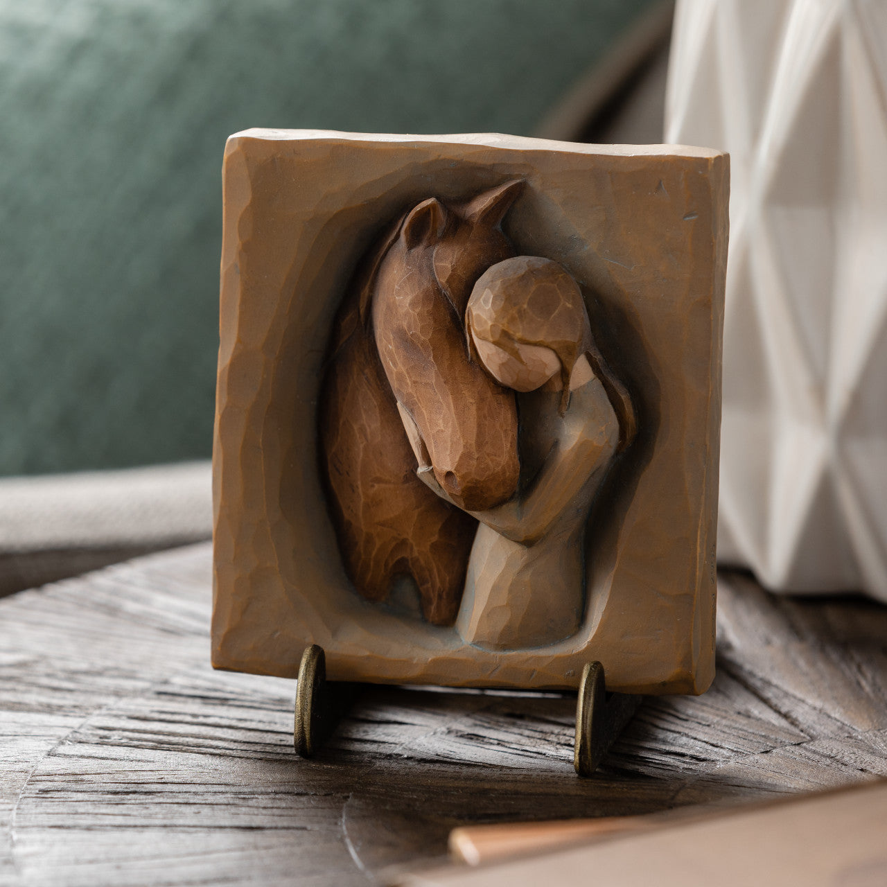 An expression of friendship and love of horses. Great on a child's bedroom wall or as a gift for an animal-lover. Create a wall display with several other plaques of similar size and expression such as with Hug, True, and Comfort.