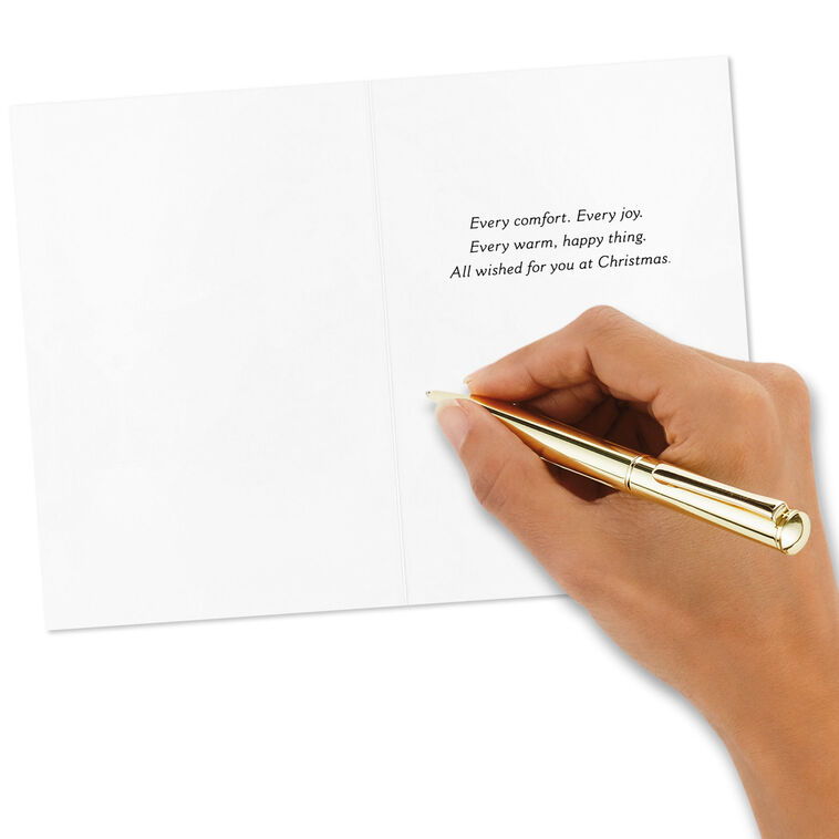 Christmas card pack features a festive pine bough and berry wreath design with gold foil accents. Our convenient pick-a-pack sets of five Christmas cards make it easy to mix, match and share happy holiday wishes with all your family and friends. Includes 5 cards and 5 self-sealing envelopes.