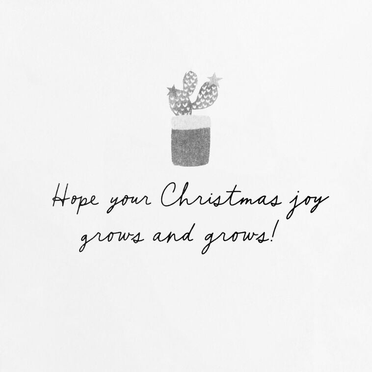 Christmas cards pack features a fun array of potted plants decked out for the holidays in garland and trim, paired with a cheerful message. Our convenient pick-a-pack sets of five Christmas cards make it easy to mix, match and share happy holiday wishes with all your family and friends. Gold foil accents. Includes 5 cards and self-sealing envelopes.