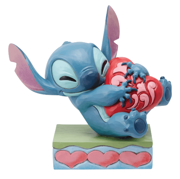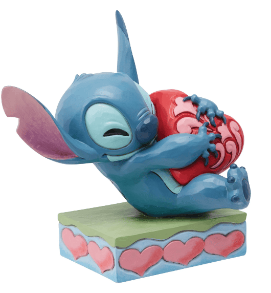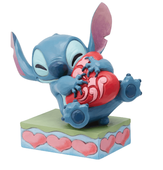 Hugging a rosemale red heart, Stitch, the charming alien, radiates love. On a stage of hearts, this adorable design by Jim Shore inspires with heartfelt craftsmanship and color. This piece will make a sweet addition to your everyday decor.