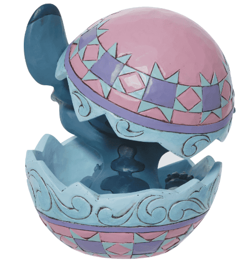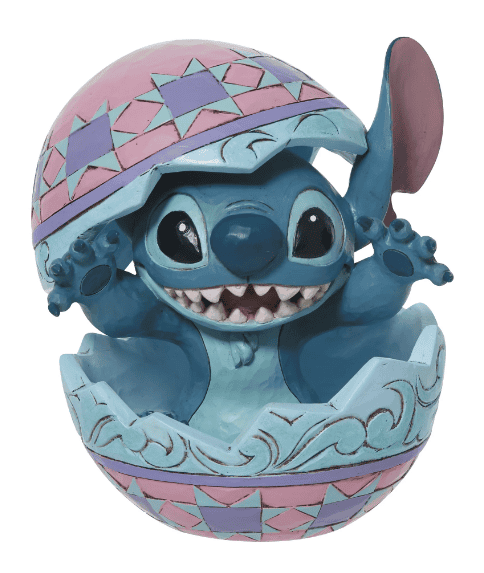 Something is hatching this spring and it isn't a baby chick! Popping out of an egg shell, Stitch the alien gleefully wishes you and yours a happy Easter. Colorfully patterned, Jim Shore helps celebrate the 20th anniversary of Lilo and Stitch.