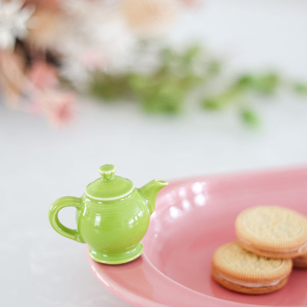 Colorful ceramic Fiesta bread tray by Nora Fleming, includes a teapot mini and fits interchangeable minis; microwave
