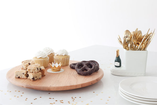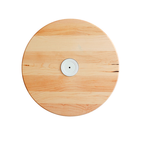 Round maple Lazy Susan by Nora Fleming, handcrafted in Vermont, ideal for serving at large tables with smooth rotating design.