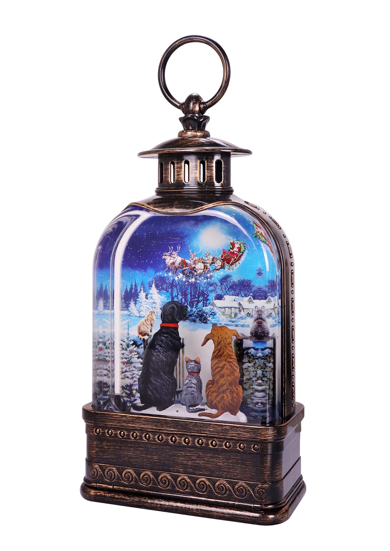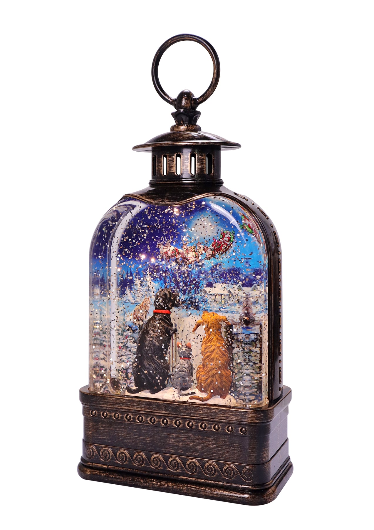 North Pole Paws Dome Sub. Glitter Lantern 10.75"