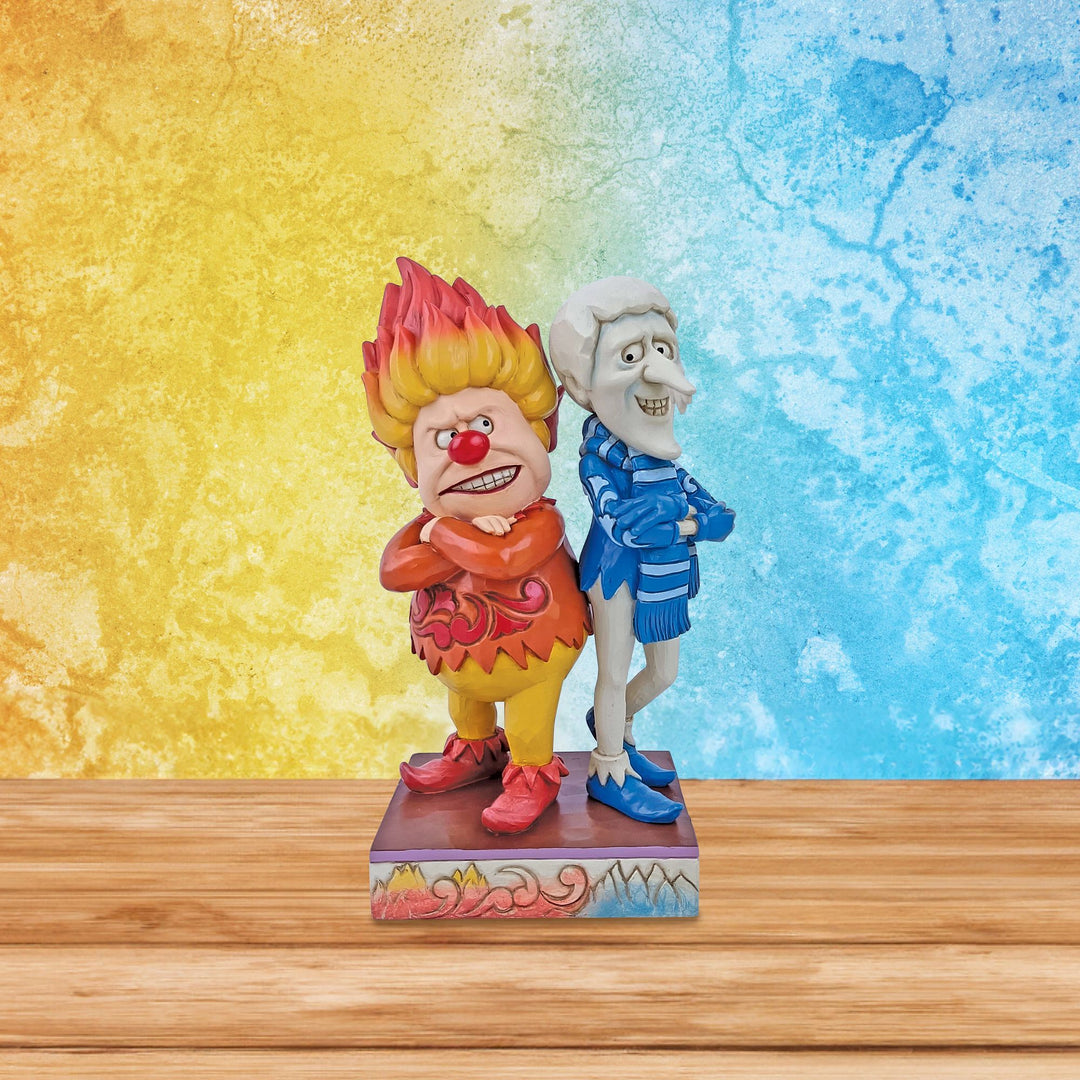 In 1974, The Year Without a Santa Claus captured a generation with stop motion animation and the story of two dueling weather titans, Heat Miser & Snow Miser. This detailed design from Jim Shore depicts the nostalgic pair of brothers back-to-back.