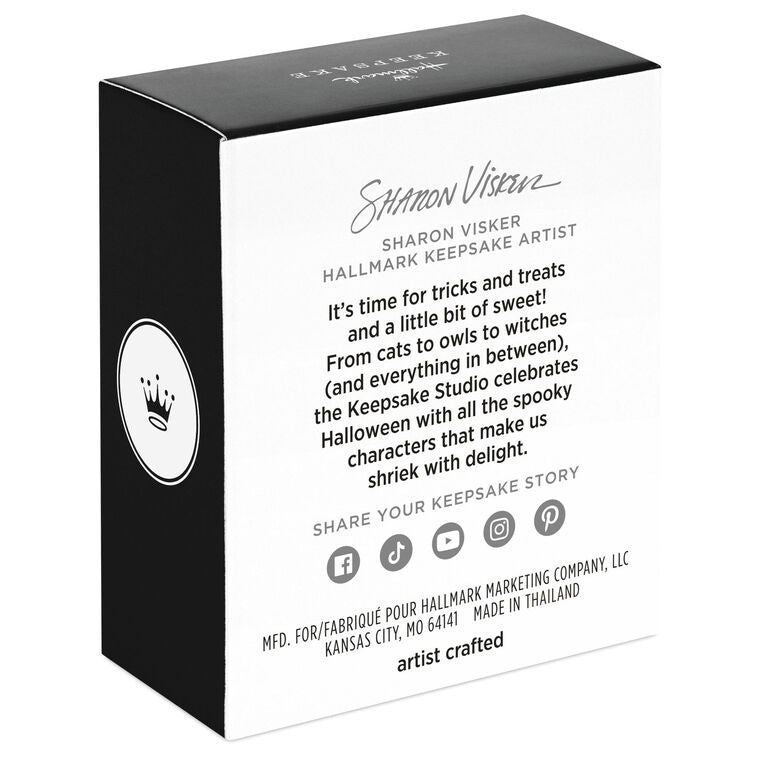 No bones about it—this miniature Halloween ornament is dapper as can be! The sparkly, smiling skull dons a debonair top hat and bow tie with purple and green accents. Makes a great complement to our Halloween Time ShowToppers Mini Tree Topper or is a no-brainer for adding to any tabletop Halloween tree.