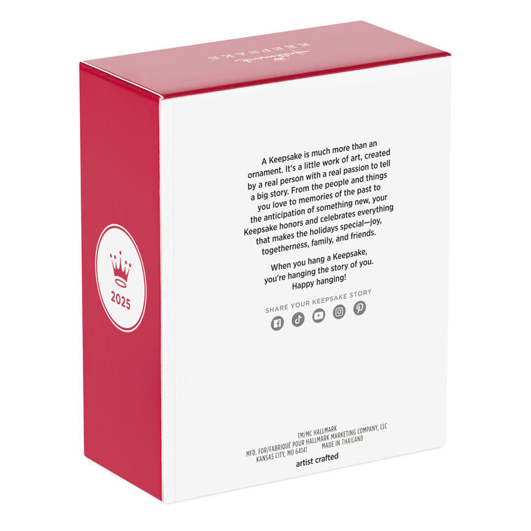 Peanuts fans young and old who remember turning regular ice cubes into cool and refreshing treats will adore this fun Christmas tree ornament celebrating the 75th anniversary of the Peanuts. The nostalgic design resembles The Original Snoopy Sno-Cone Machine—complete with "ice pusher" Snoopy perched atop his doghouse. A red snow shovel was used to scoop up the shaved ice and a snowman-shaped bottle held the yummy, sweet syrup.
