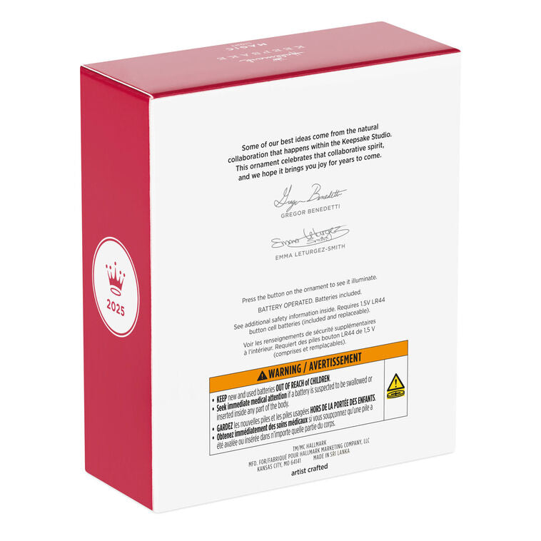 Welcome the Merc With a Mouth to your holiday celebrations with this Christmas tree ornament featuring Deadpool, the world's greatest mercenary and chimichanga aficionado. This awesome decoration features the irreverent and self-aware Super Hero sporting his iconic black and red suit, perched on an arrow-shaped marquee. Press the button to make the sign light up. Battery operated.