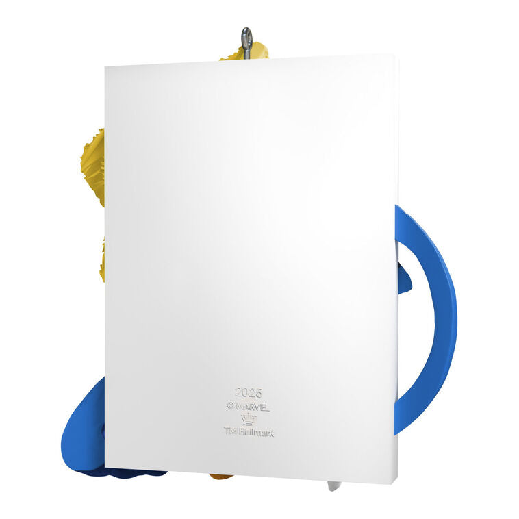 After an experimental space flight exposed them to cosmic rays that gave them superhuman powers and abilities, the first family of the Marvel Universe assembled in the pages of the Fantastic Four comic book. The Marvel Comics classic comes to life in the form of this Christmas tree ornament. Mister Fantastic (Reed Richards), Invisible Woman (Susan Storm), Human Torch (Johnny Storm) and The Thing (Ben Grimm) spring from the comic's cover art in a dynamic dimensional design.