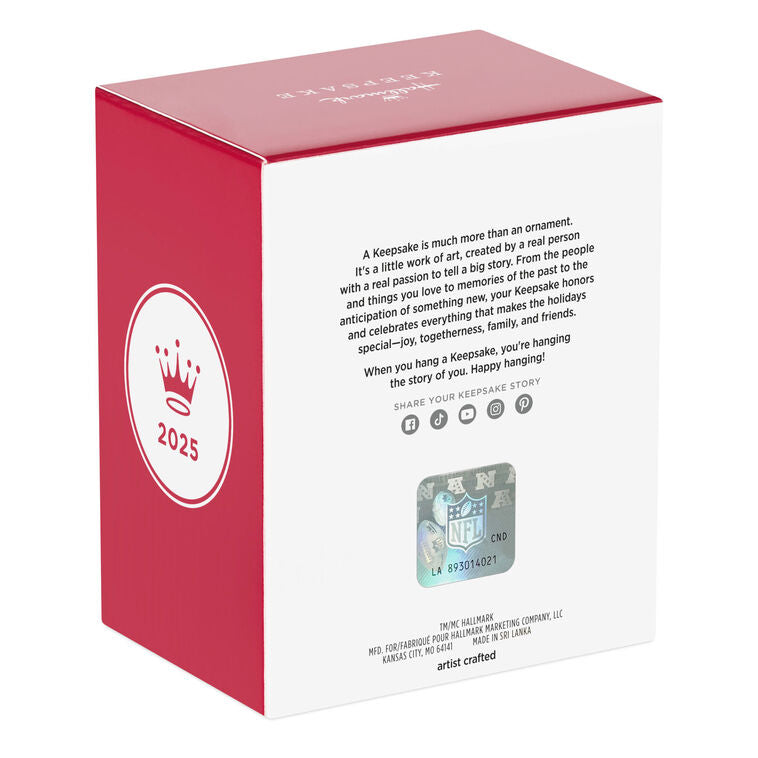 San Francisco 49ers fans everywhere will rush to get their hands on this Christian McCaffrey Christmas tree ornament. With a detailed likeness of the football player in his 49ers uniform, this decoration captures the star running back in an action-packed pose hustling with the football.