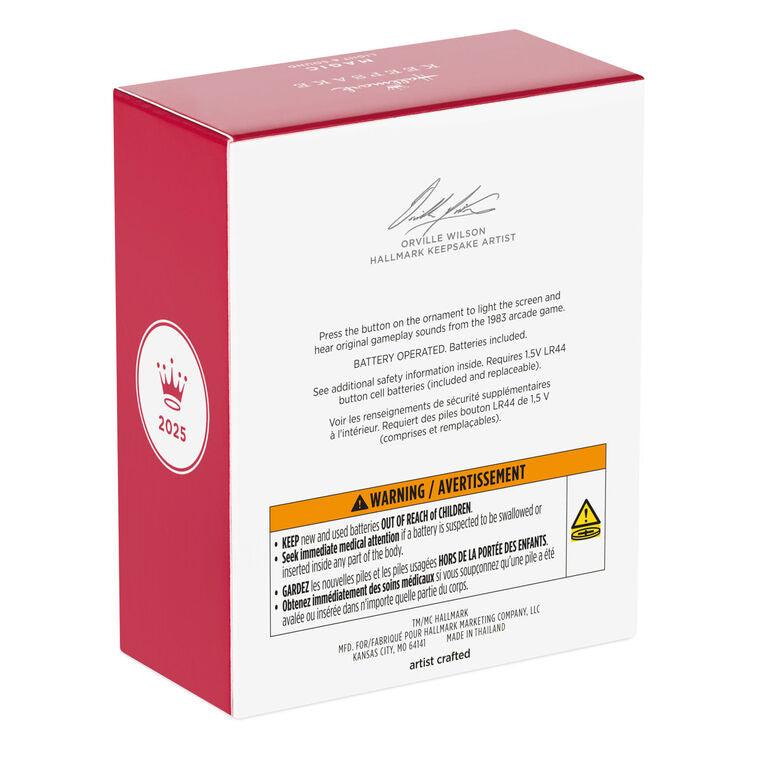 Welcome aboard, Captain! Bring back the thrills of 1980s-era video arcades with this Christmas tree ornament of the Star Trek Strategic Operations Simulator that featured a captain's chair seat and video game screen. Press the button to hear original gameplay sounds and see the display light up with game vector graphics. Battery operated.