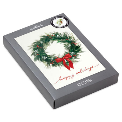 Greenery Wreath Pine-Scented Boxed Christmas Cards, Pack of 12