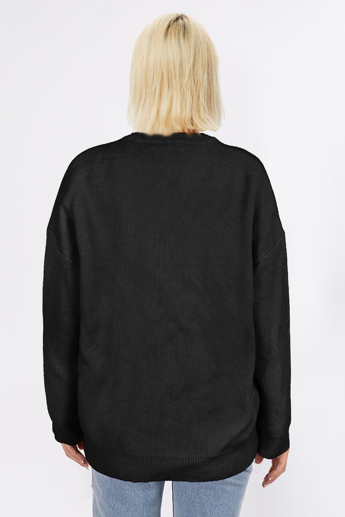 Dress up your holiday wardrobe with this chic black sweater featuring a glamorous oversized sequin bow. It's the perfect mix of sparkle and sophistication for seasonal parties or gifting flair.