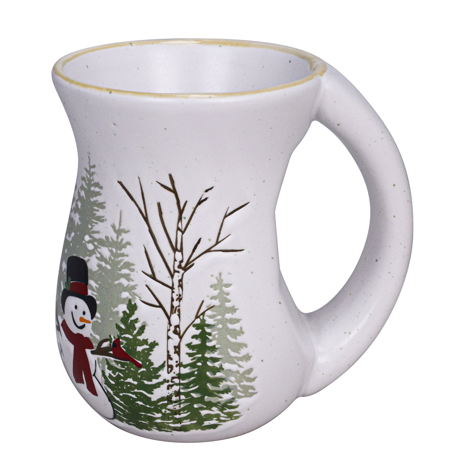 Embrace the warmth of the season with this charming mug featuring wintry trees and a friendly snowman. A perfect companion for hot drinks on chilly days.