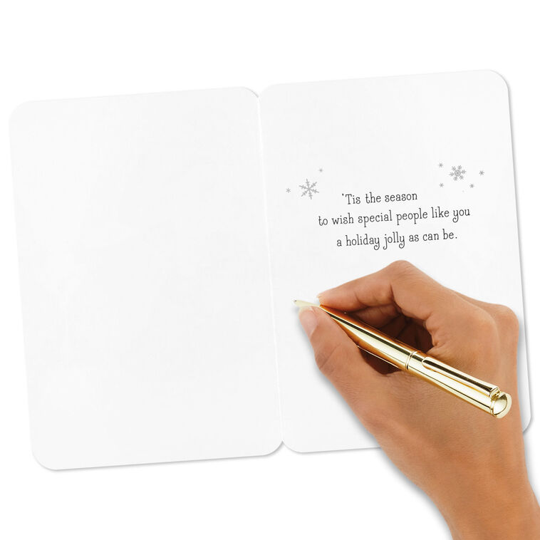 Boxed holiday cards feature an illustrated winter wonderland with a snowman, his deer friend and winter cardinals around them. Silver foil and glitter accents help create the sparkling scene. This multipack of holiday cards is perfect for sending season's greetings to friends, family and loved ones. Includes 16 cards and 16 designed, self-sealing envelopes.