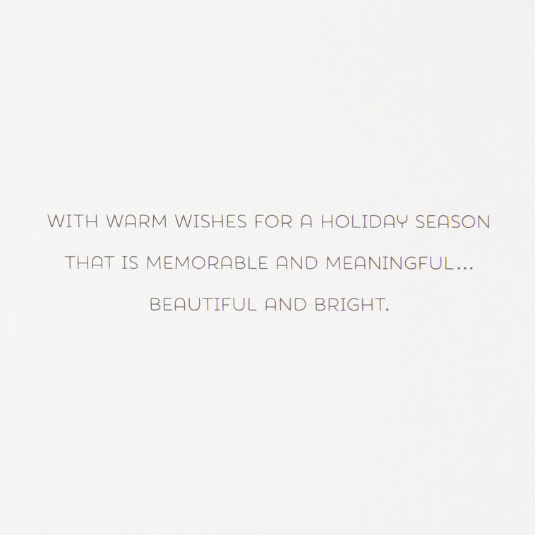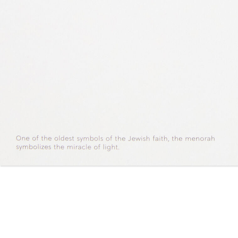 UNICEF boxed Hanukkah cards feature an elegant illustration of a menorah with a sparkling gold foil base and stylized candles and flames, creating a striking display against a deep blue background. Paired with an uplifting message, these greetings are a beautiful way to share inspiration and joy with family, friends and loved ones during the Festival of Lights. Includes 12 cards and envelopes.