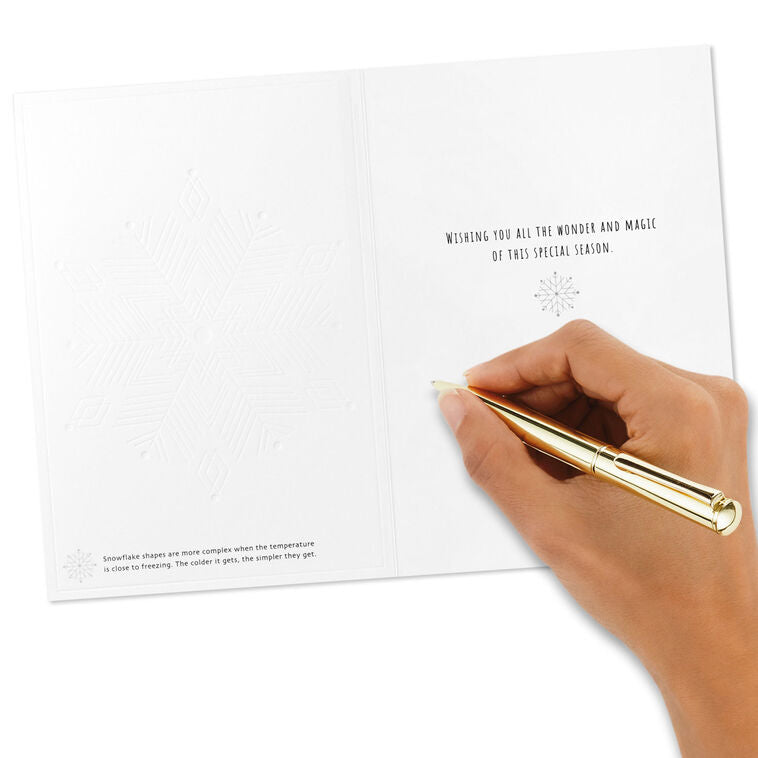 Boxed holiday cards feature a charming multicolor snowflake design in bright lines on white paired with a simply stated message of holiday wonder. These warm holiday greetings make a great choice for friends, family and loved ones. Embossed accents. Includes 20 cards and envelopes.