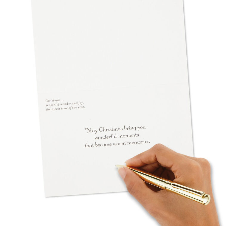 Boxed Christmas cards feature the light-capturing artwork of Thomas Kinkade with a glittery scene of reindeer pulling Santa in his sleigh into the air from a snowy rooftop. This multipack of holiday cards makes a great choice for sharing season's greetings with friends and family near and far. Includes 16 cards and self-sealing envelopes.