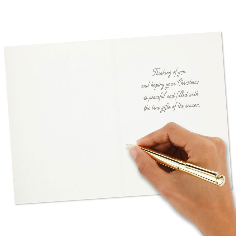 Boxed Christmas cards feature a watercolor wreath illustration accented with gold foil berries and a textured bow. This multipack of holiday cards is perfect for sending season's greetings to friends, family and loved ones. Includes 16 cards and 16 envelopes.