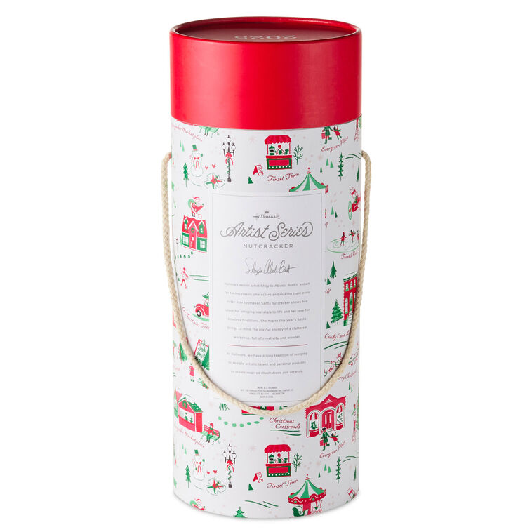 Add a handcrafted touch to your holiday decor with this charming Toymaker Santa nutcracker figurine. Dressed in a green workshop apron with tools tucked into the front pocket, Santa is ready for a night of toy-making magic with a wooden mallet in one hand and a classic pull-toy horse in the other. His iconic red hat, round glasses, and painted winking face add extra cheer to this festive figure. A delightful addition to your Christmas collection or a thoughtful gift for a nutcracker enthusiast, this whimsical Santa comes gift boxed and ready to spread joy.