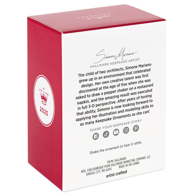 Tickle the tastebuds of family and friends when you hang this kid-approved Christmas tree ornament. The whimsical decoration features the iconic blue and yellow box of Kraft Mac & Cheese, and a white bowl filled with the popular cheesy pasta with a spoon. Shake the ornament to hear the rattle of dry pasta in the cardboard box.